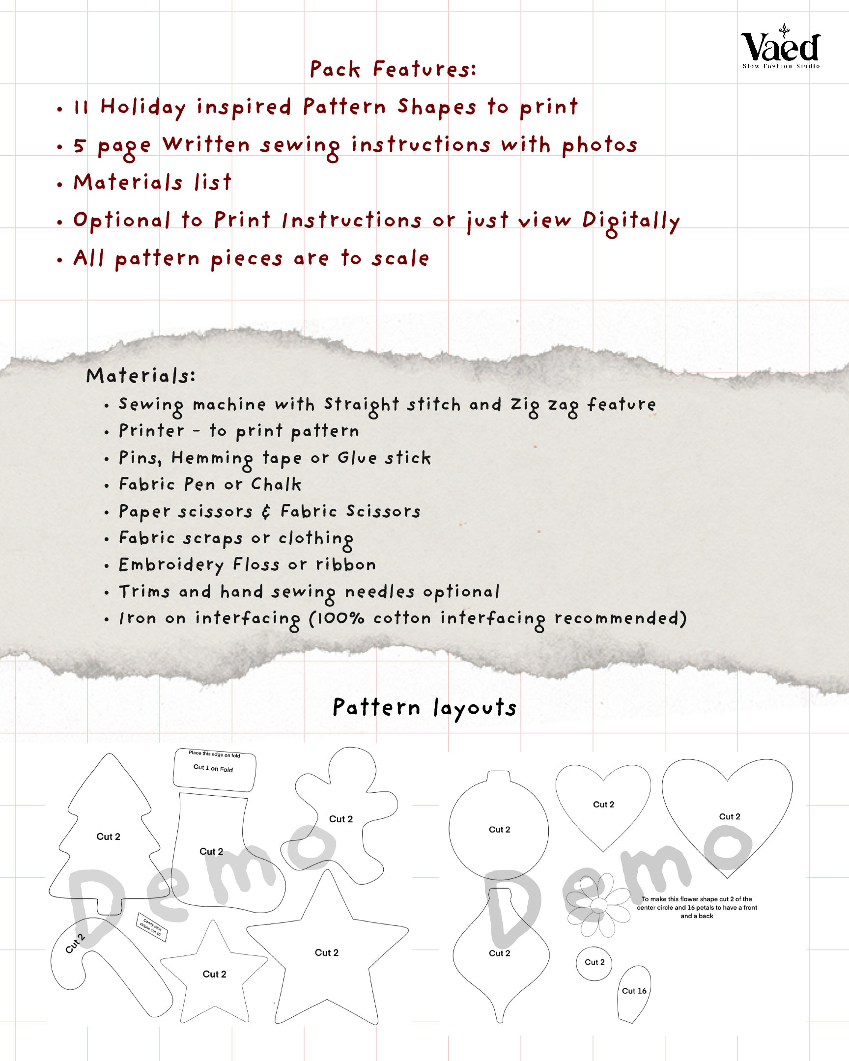 This downloadable pattern pack includes printable ornament templates and a full, step-by-step photo guide with written instructions.