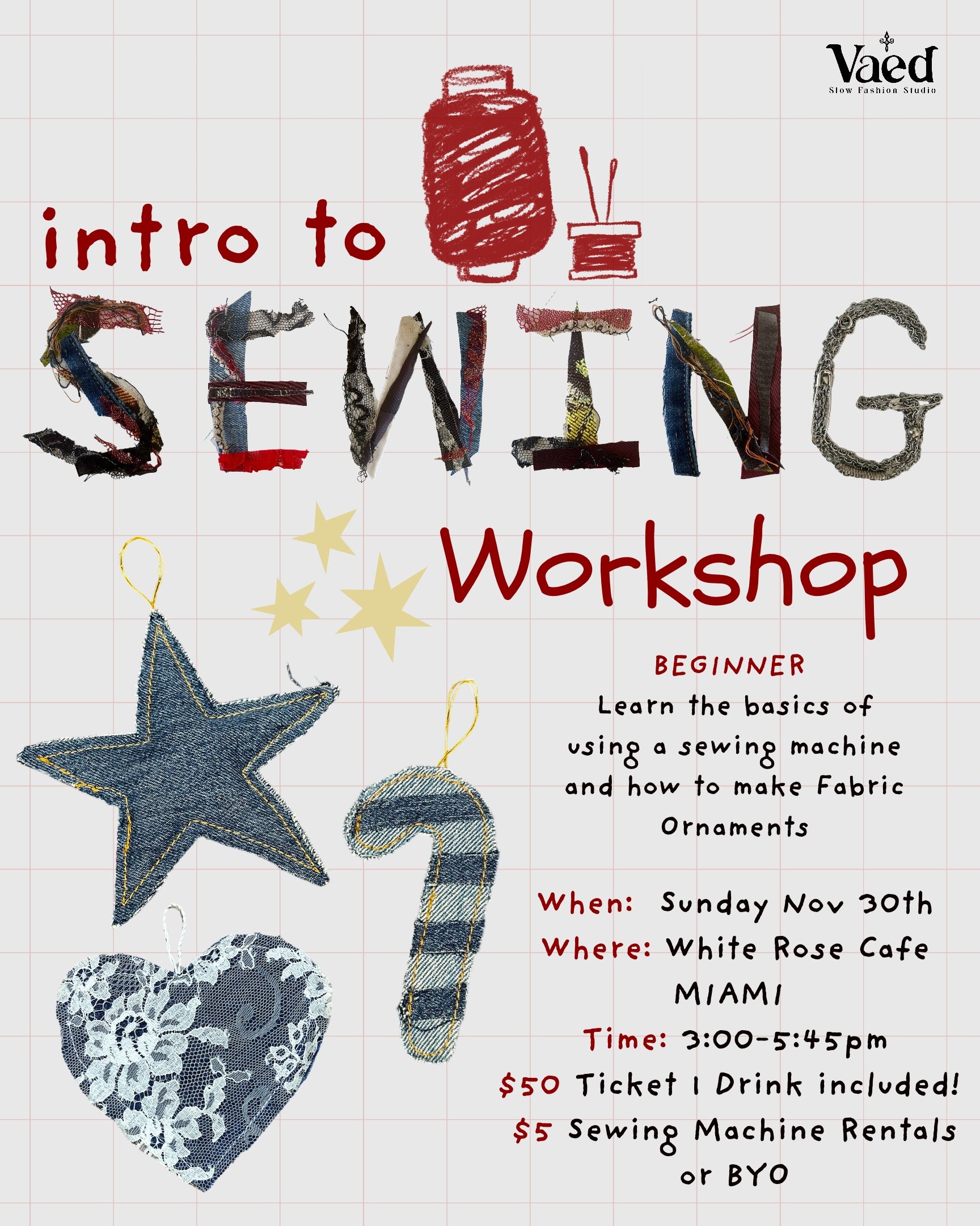 sewing machines are Available for rent for $5, please bring your own machine if you have, 1 Drink of your choice is Included in ticket price!