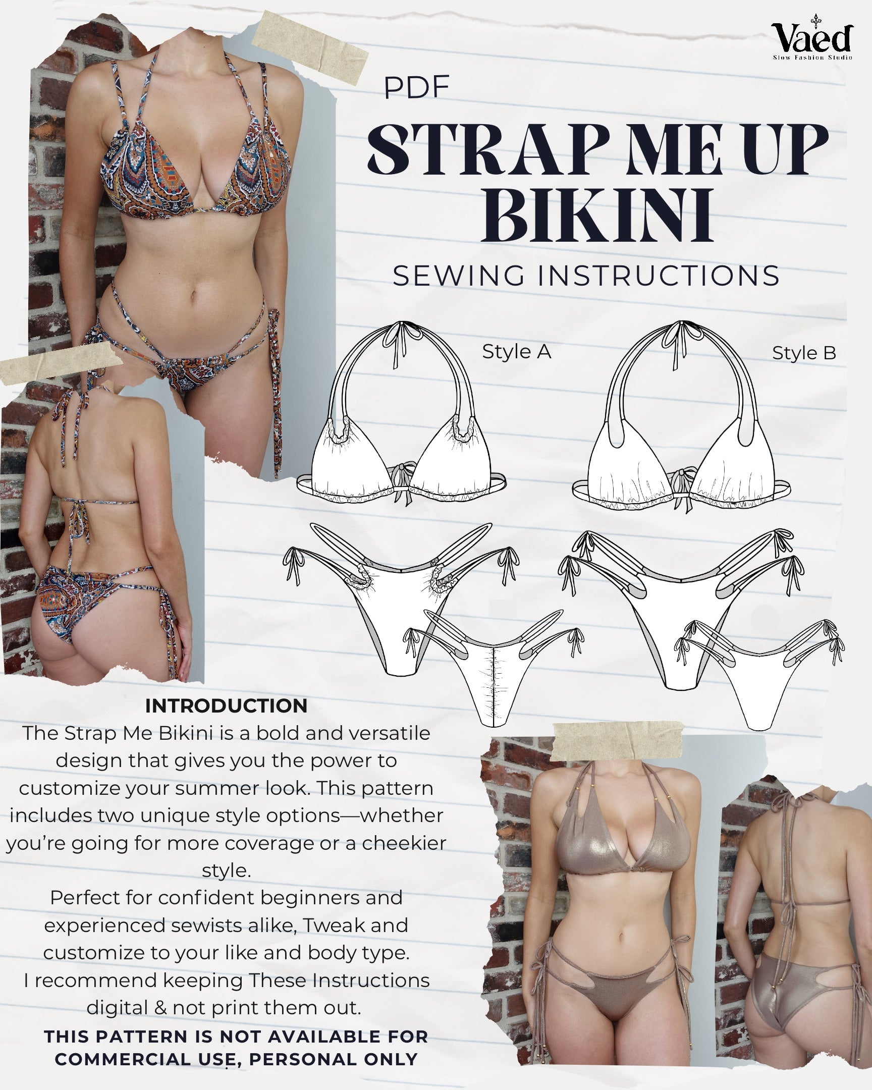 Strap me up Bikini Sewing Pattern for sizes XS/A Cup- 4XL/G cup