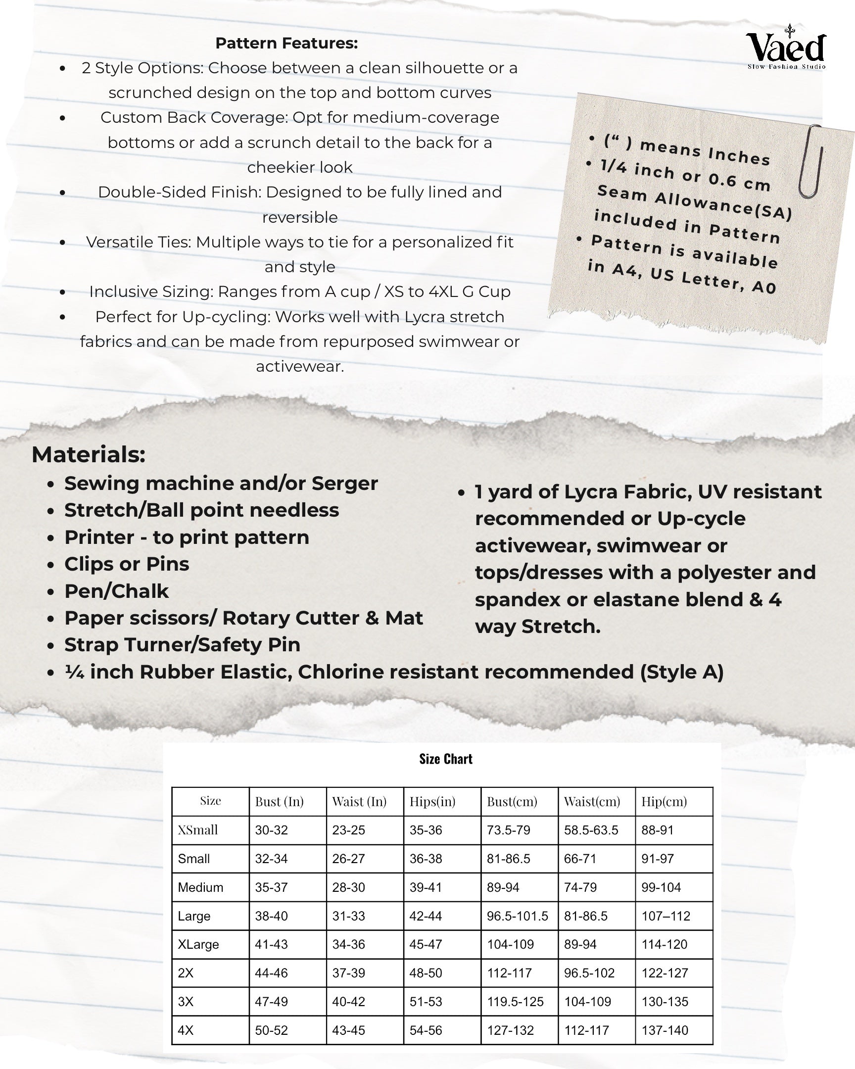 - PDF Sewing pattern for A0 , A4, US letter page sizes